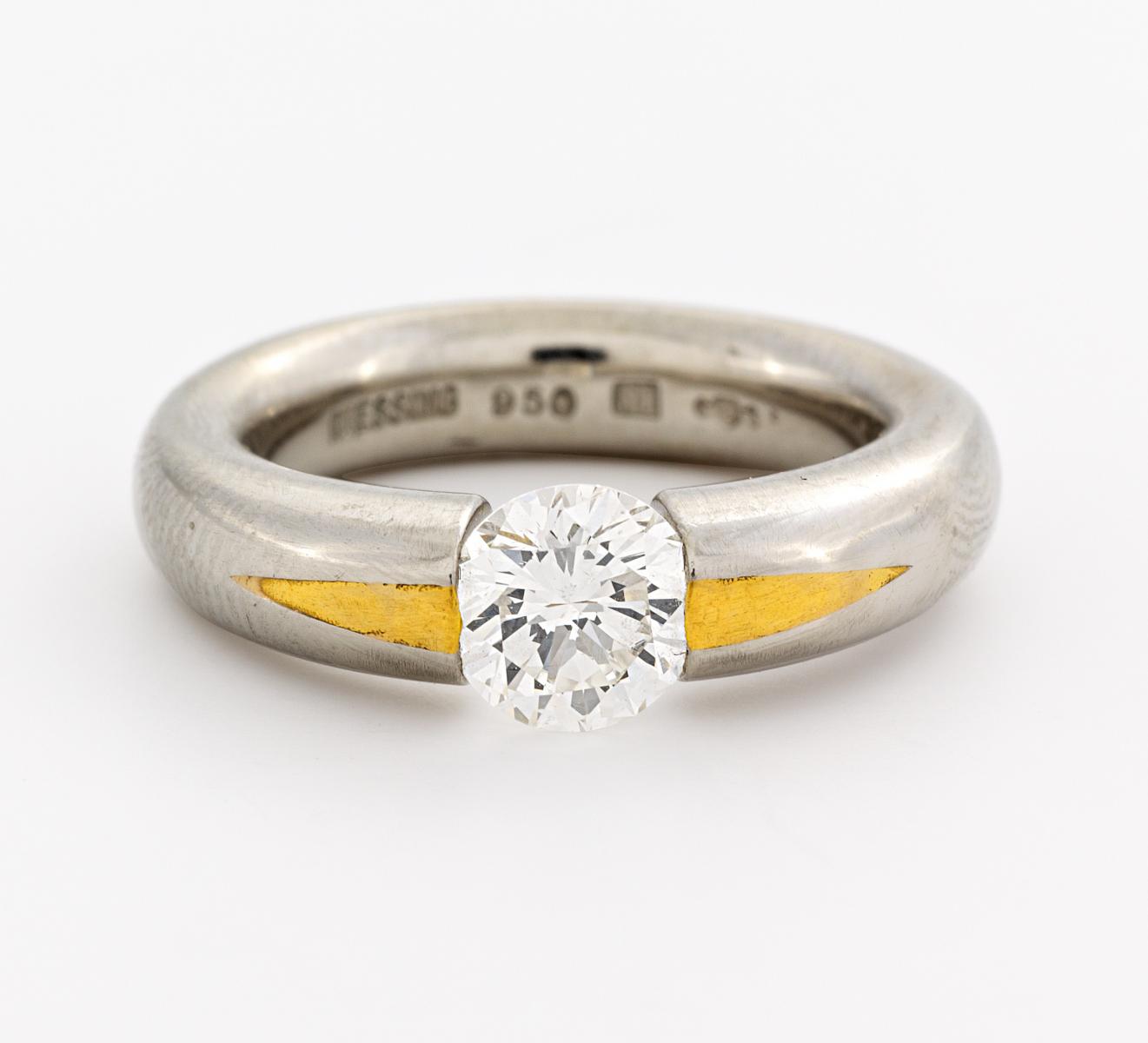 Spannring mit Solitaire-Brillant, Niessing. 950/- PLATIN, FEINGOLD.