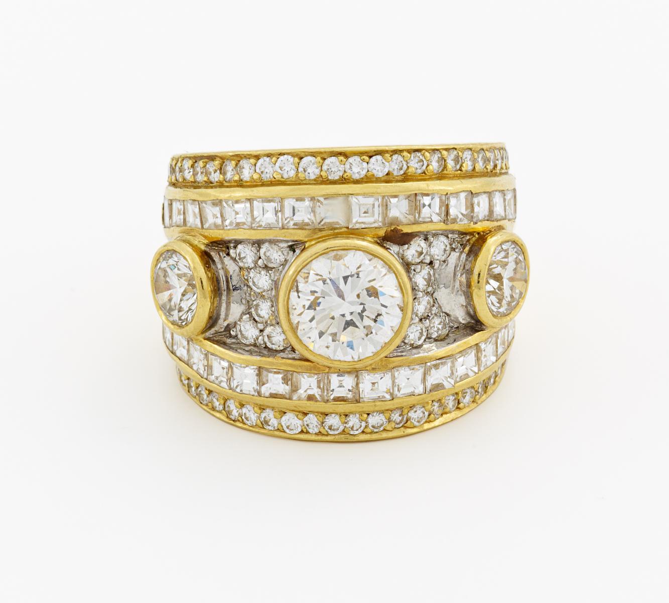Juwelenring mit Diamantbesatz. 750/- GELBGOLD.