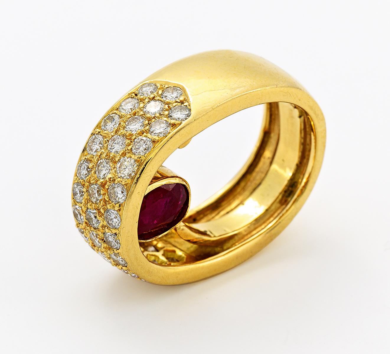 Ring "Arcade" mit Diamant-Rubinbesatz, Vendome. 750/- GELBGOLD.
