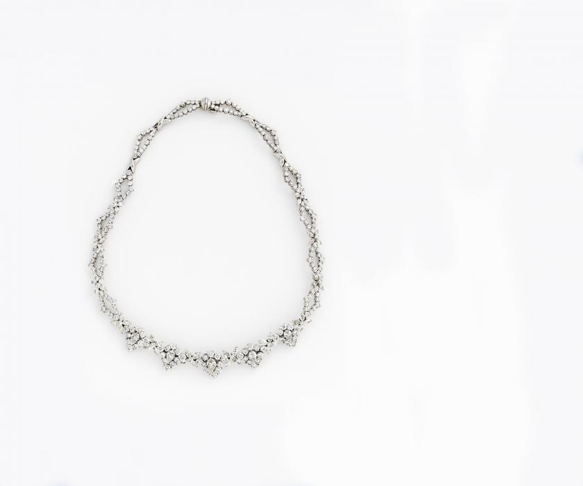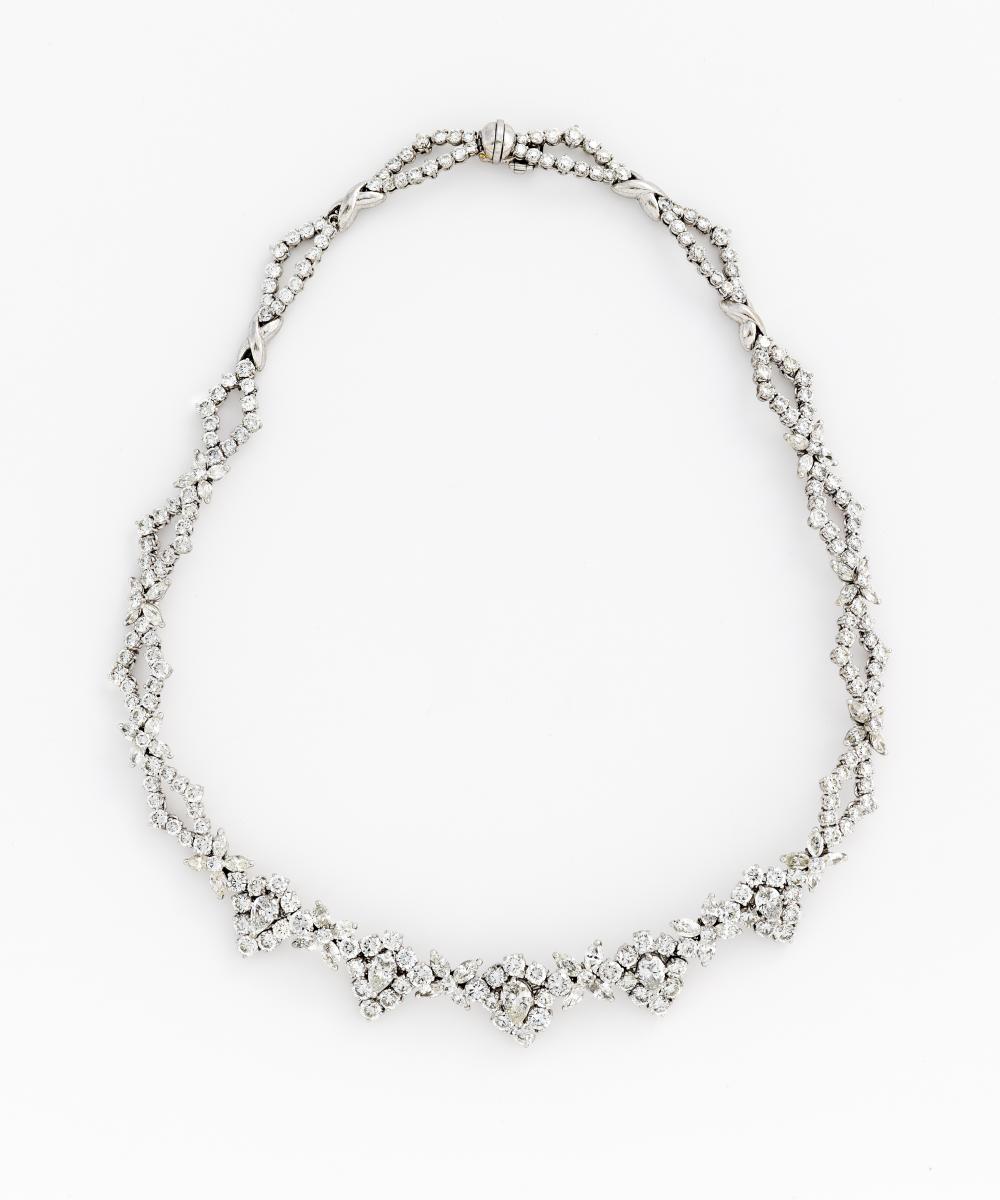Feines Juwelencollier mit Diamantbesatz. 750/- WEIßGOLD.