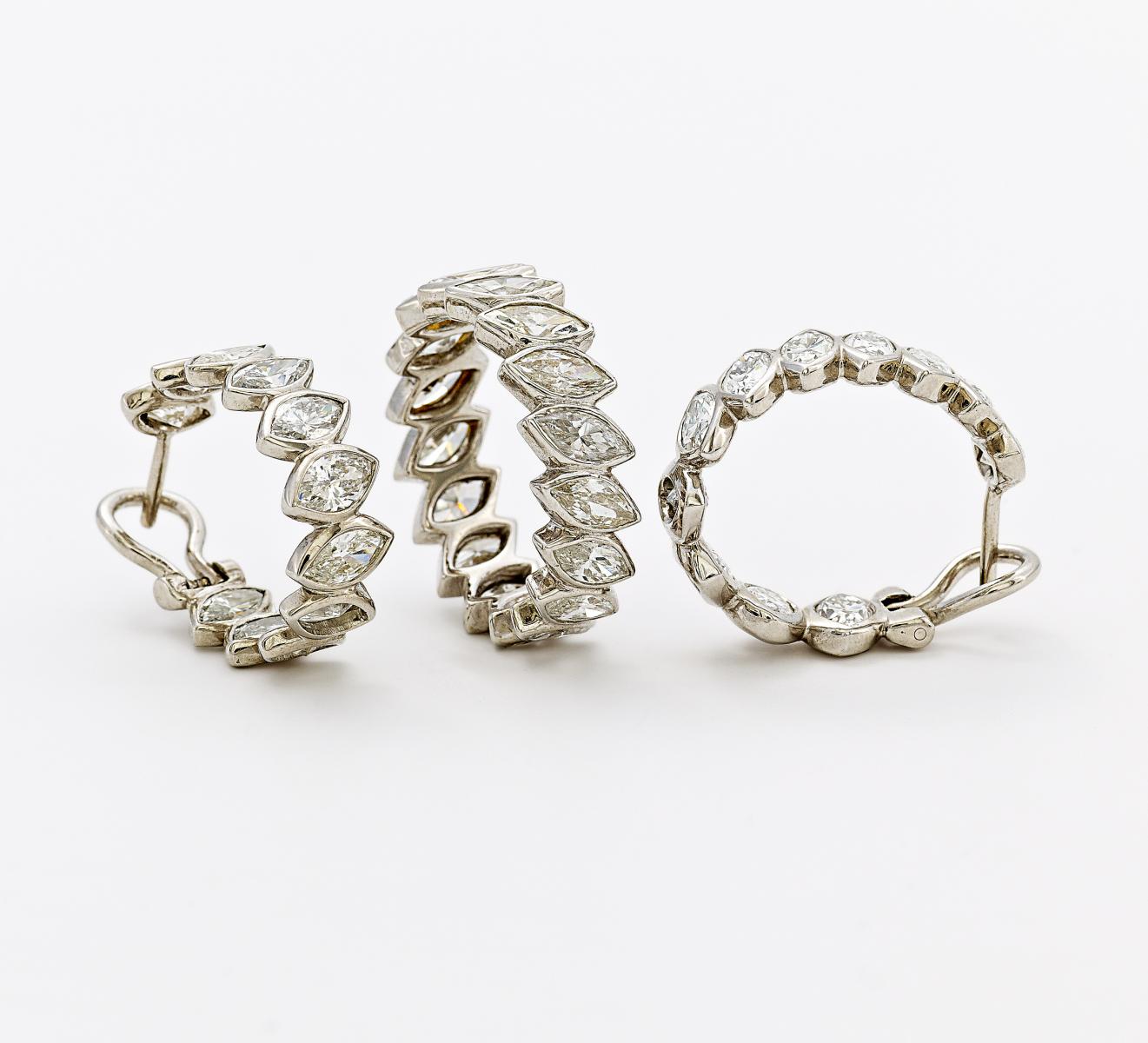 Set: Ring und Ohrcreolen mit Diamantbesatz. 585/- WEIßGOLD.