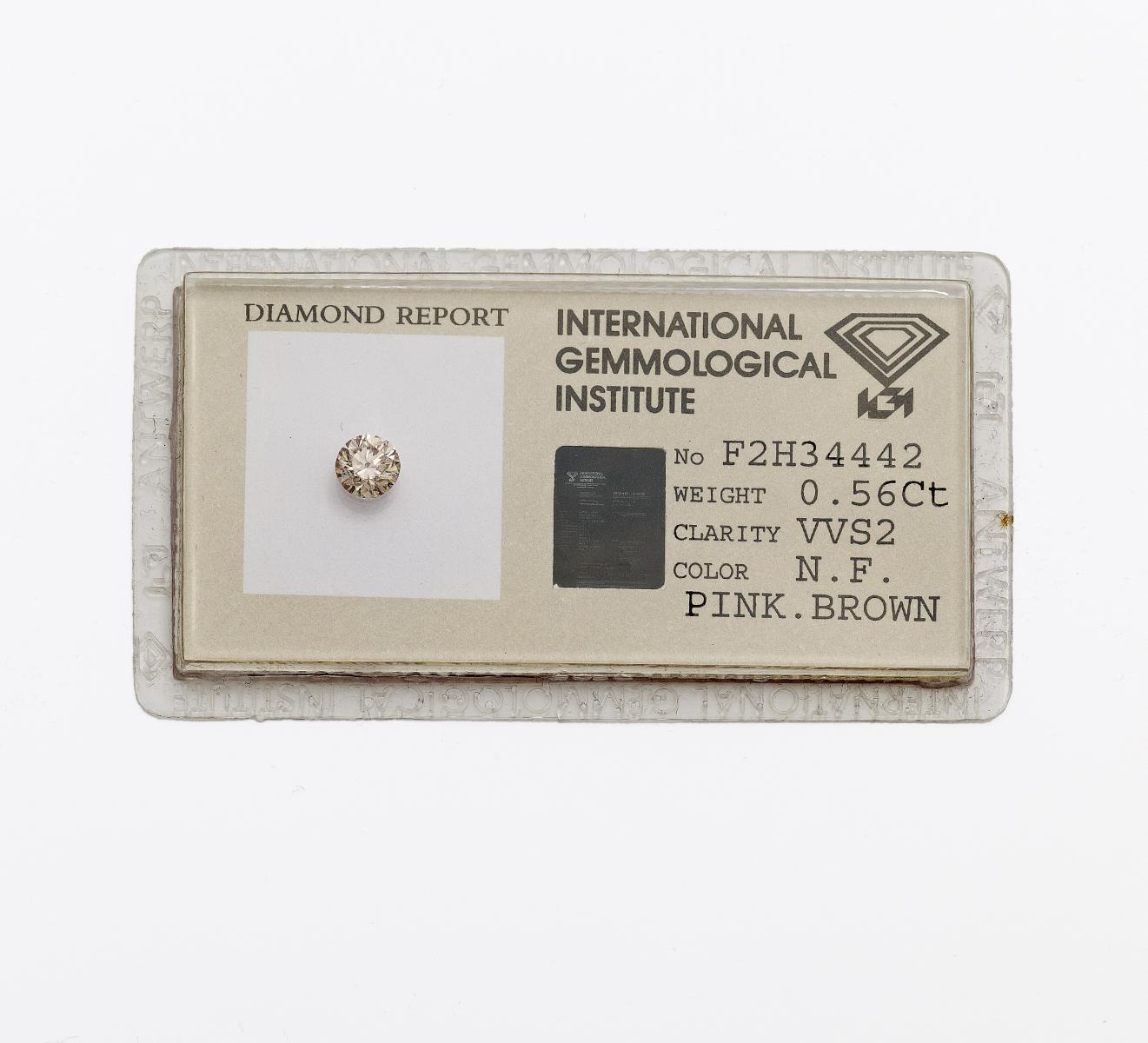 Loser Brillant ca. 0,56ct pinkish brown. EINGESCHWEIßT IN BOX MIT IGI-ZERTIFIKATSNUMMER.