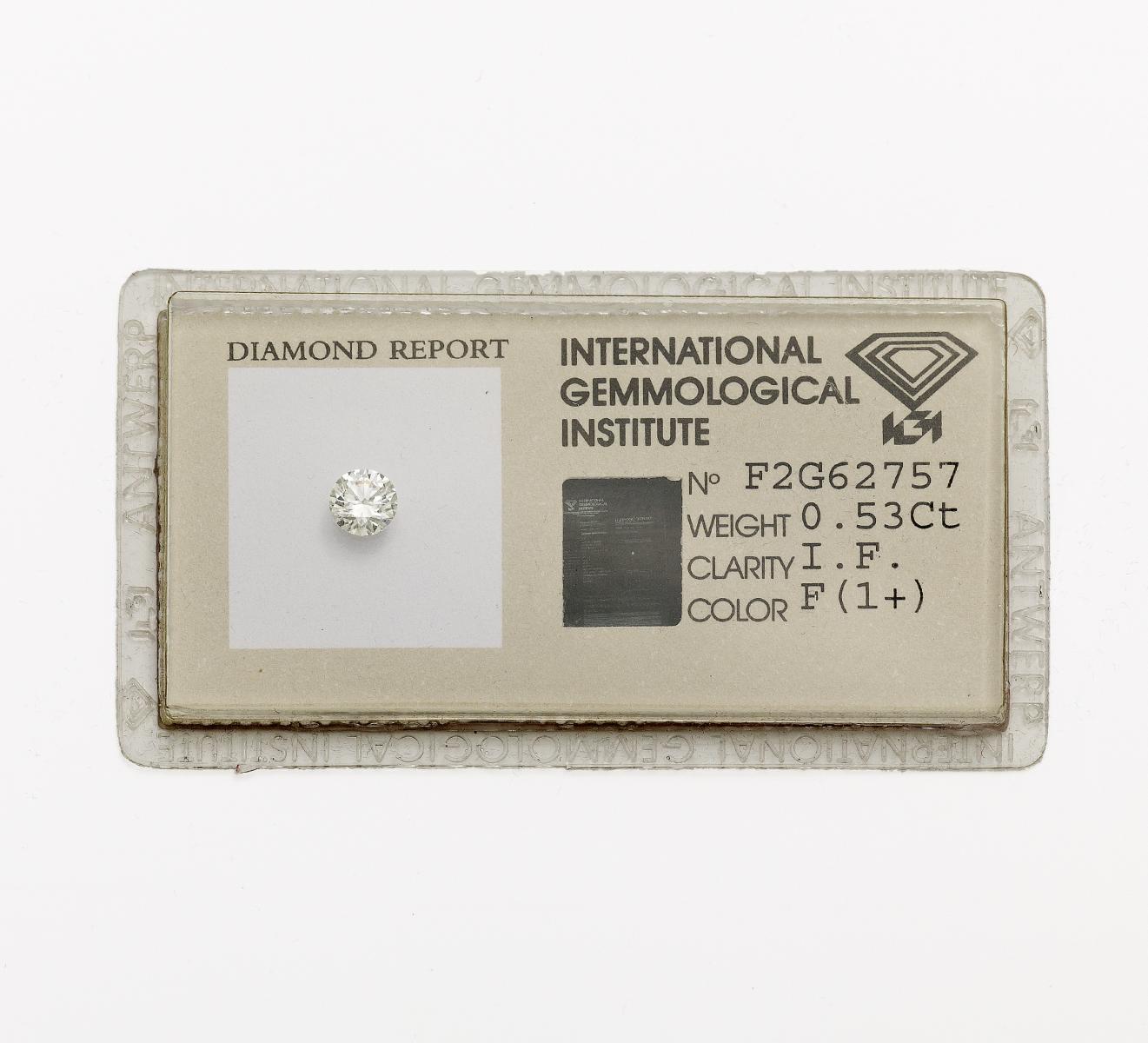Loser Brillant ca. 0,53ct. EINGESCHWEIßT IN BOX MIT IGI-ZERTIFIKATSNUMMER.