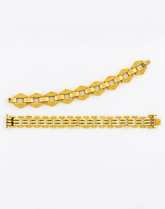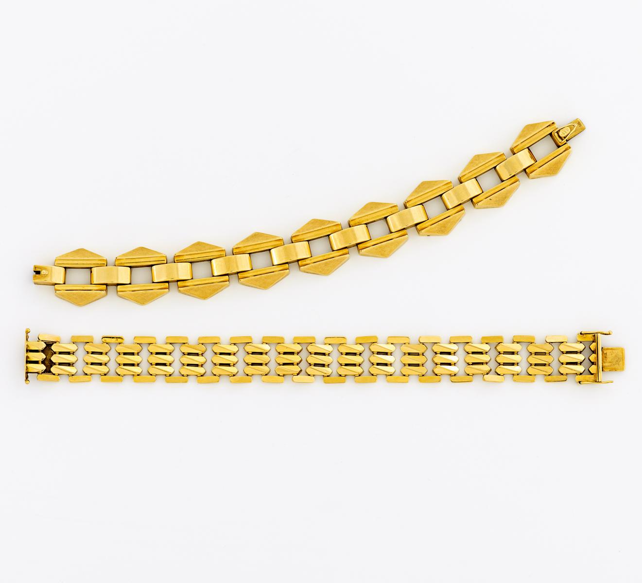 Zwei geometrische Armbänder. 585/- GELBGOLD.