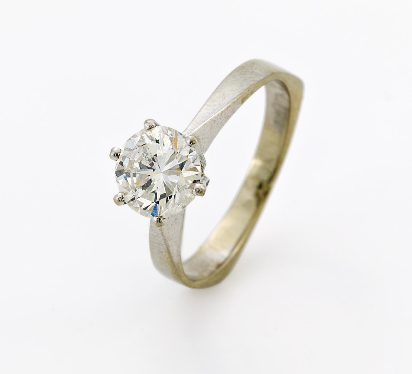 Solitaire-Ring mit Brillantbesatz. 750/- GELBGOLD MIT WEIßGOLDVERBÖDUNG.