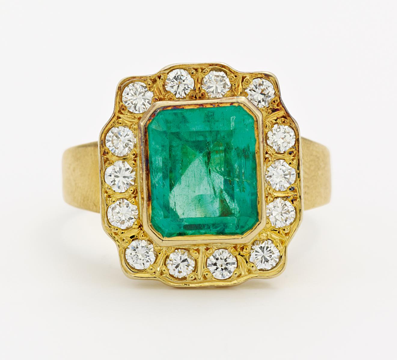 Ring mit Smaragd-Brillantbesatz. 585/- GELBGOLD.