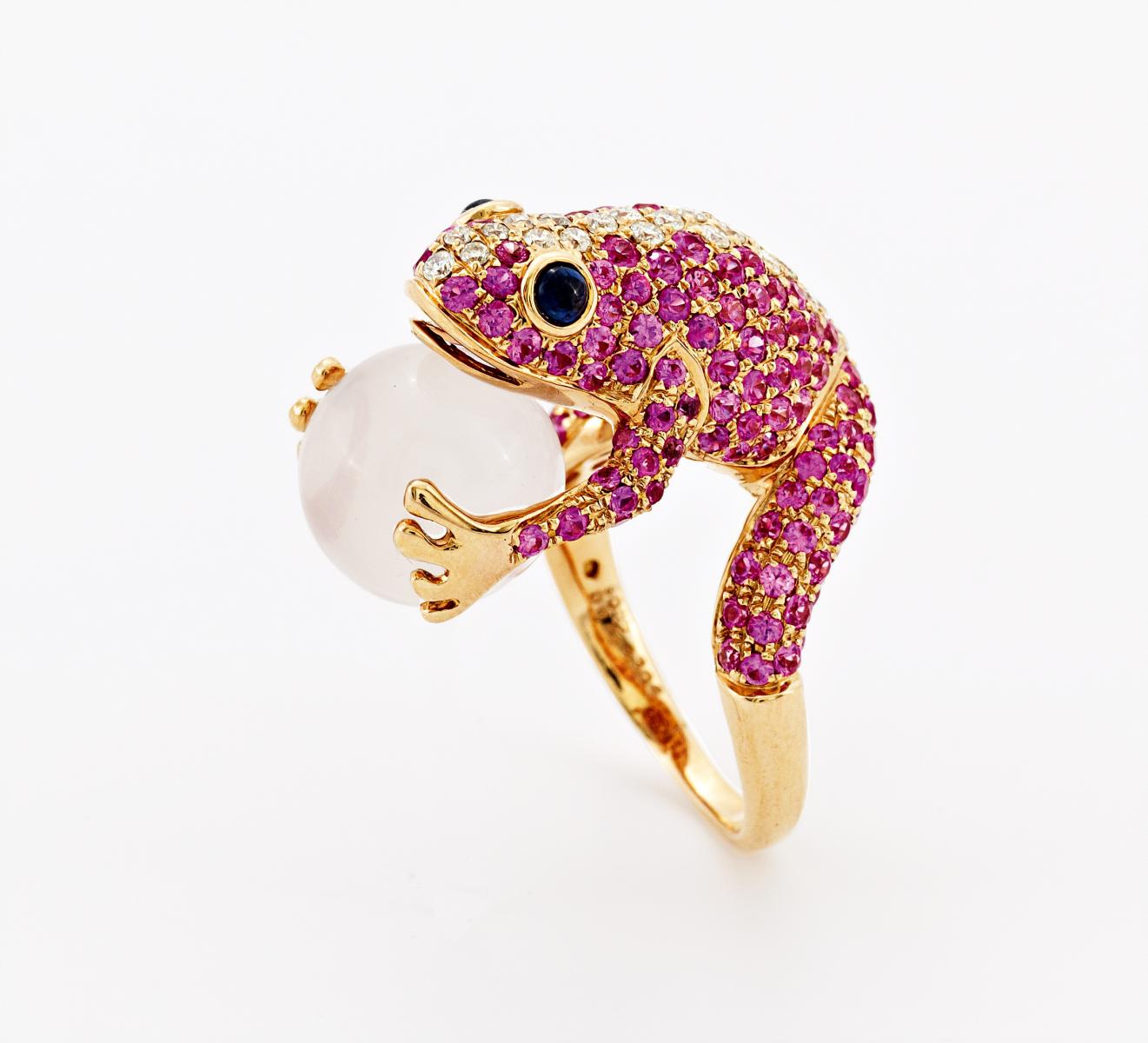 Froschring mit Saphir-Diamantbesatz. 750/- ROSÉGOLD.