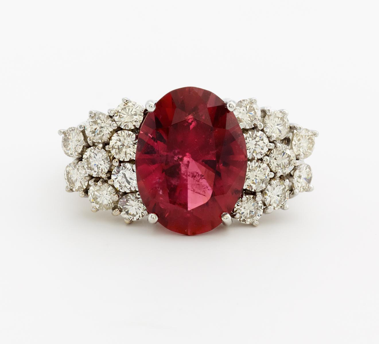 Cocktailring mit Rubellit-Brillantbesatz. 750/- WEIßGOLD.