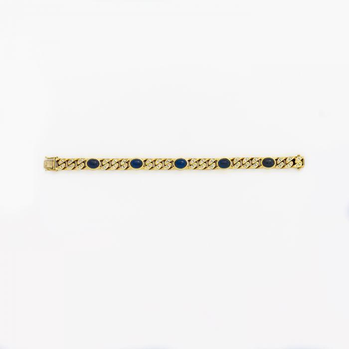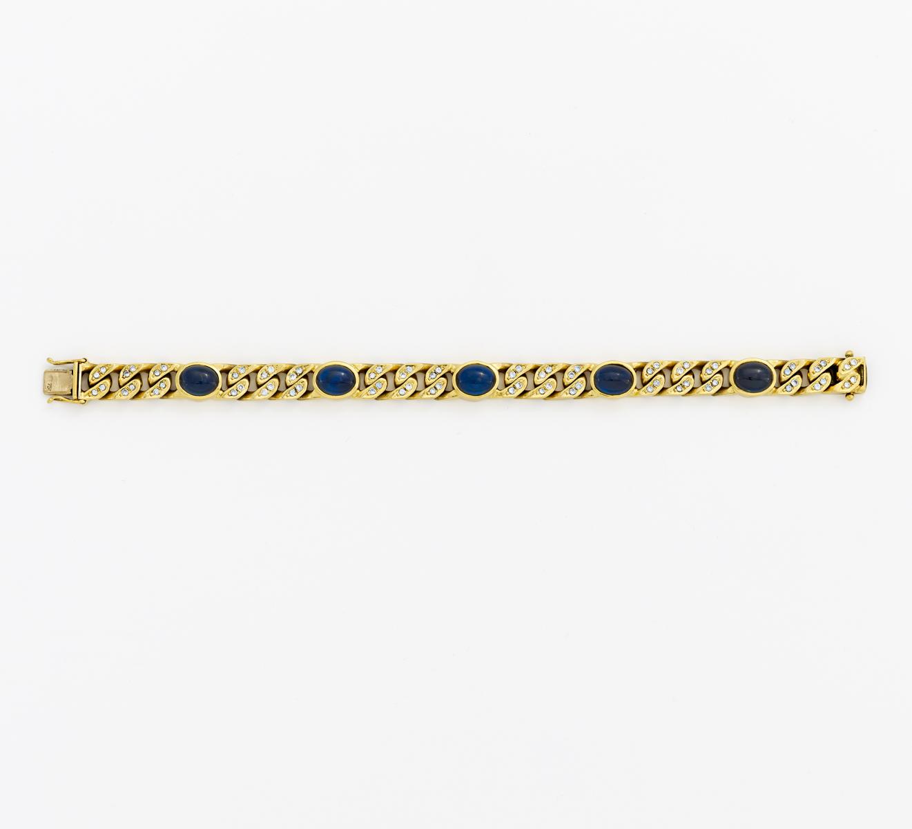 Massives Panzerarmband mit Saphir-Diamantbesatz. 750/- GELBGOLD.