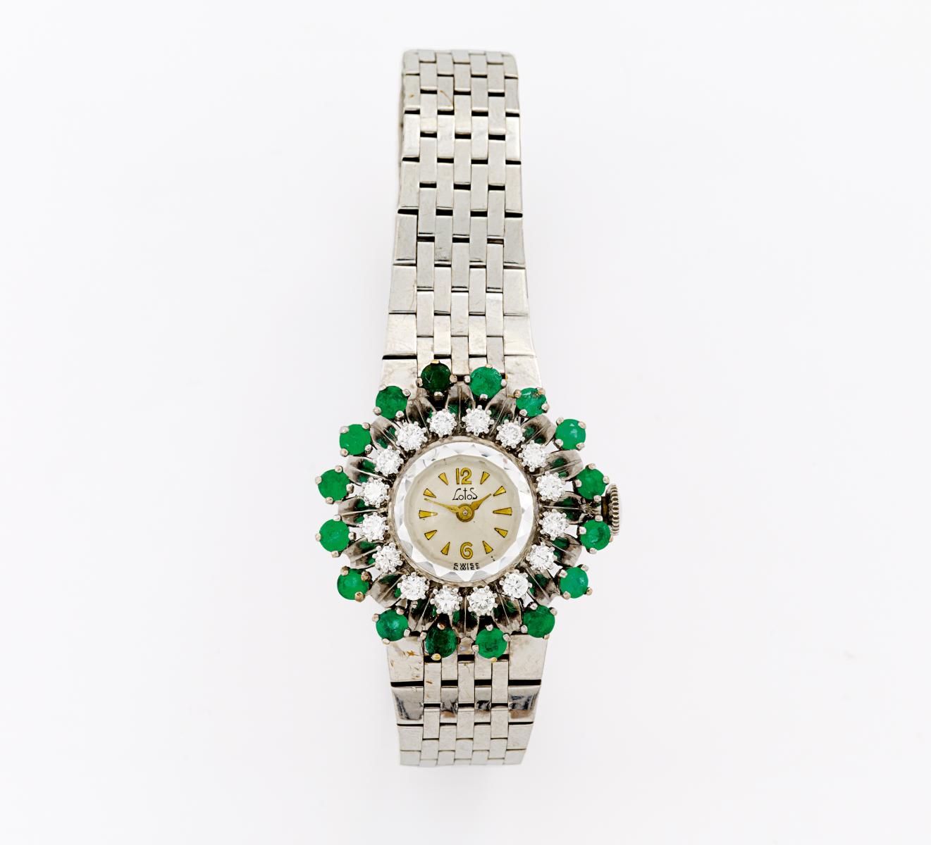 Lotos. Cocktailarmbanduhr, 27141. Gesamtgewicht: 750/- Weißgold, 585/- Gelbgold. Gehäuse-Nr.: D. 13mm, L. ca. 18,0cm. Referenz-Nr.: 42,2g. Werk-Nr.: Deutschland.