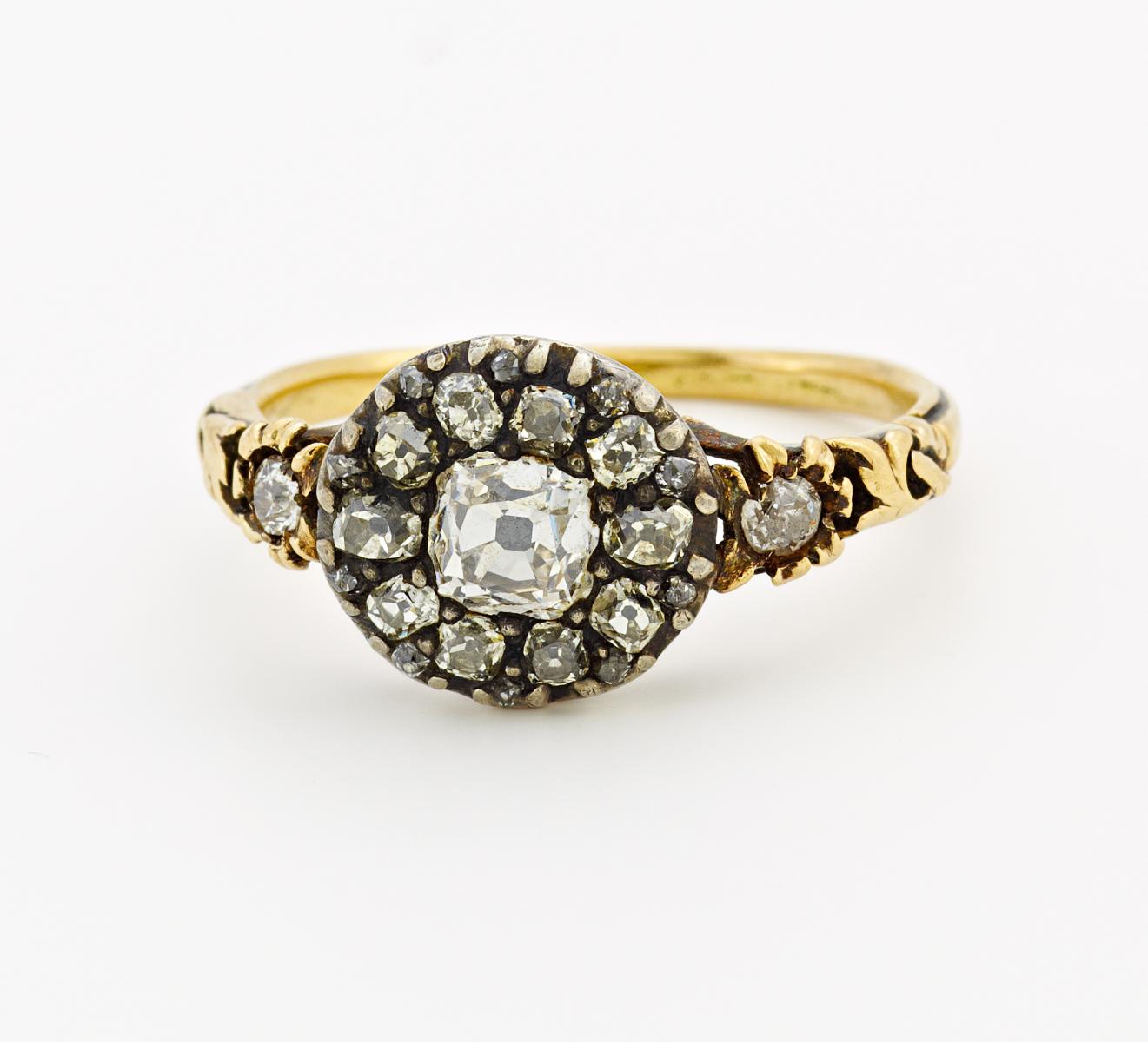 Historischer Ring mit Diamantbesatz. 585/- ROTGOLD MIT SILBERVERBÖDUNG.
