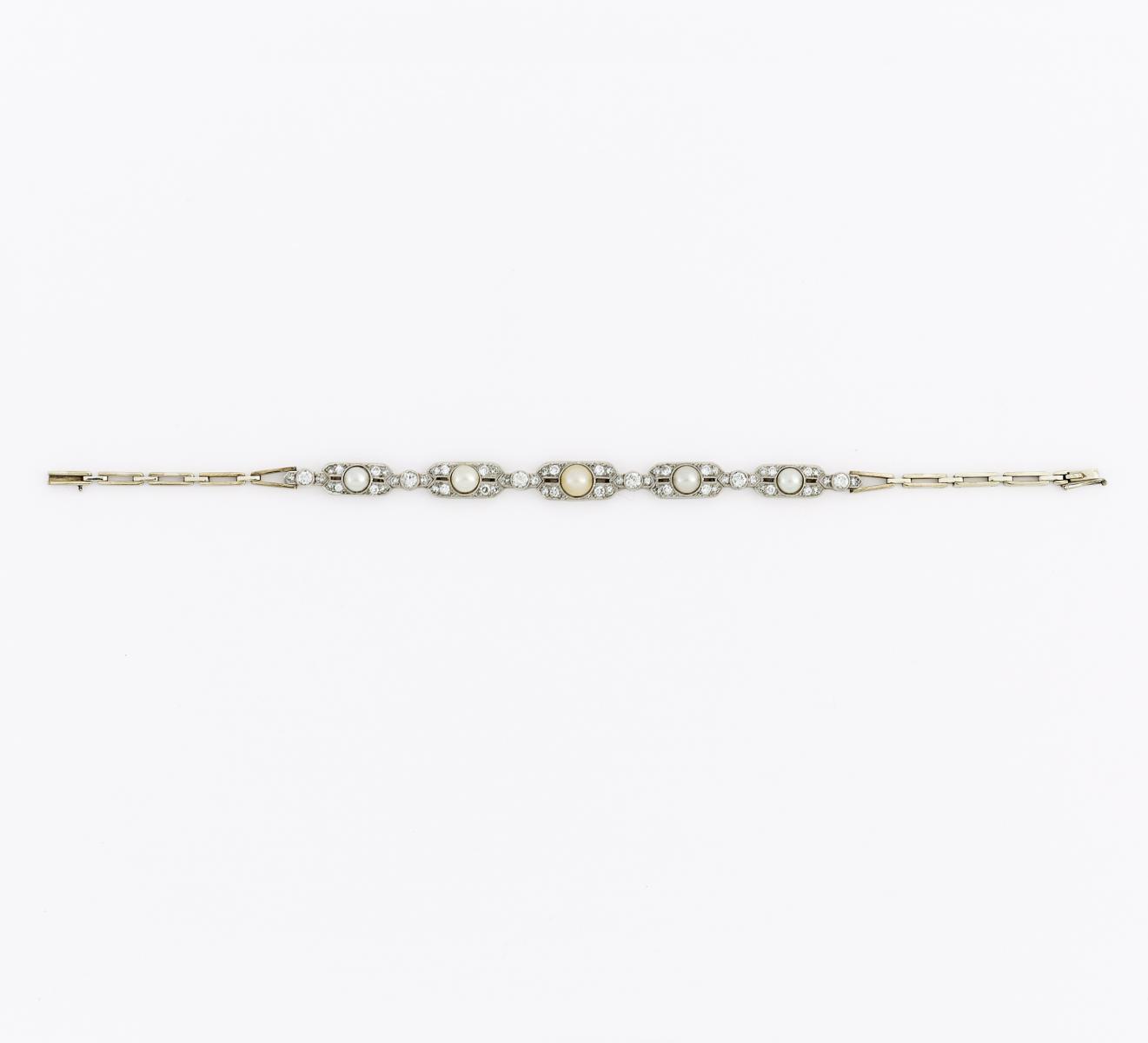 Art Deco. Armband mit Naturperl-Diamantbesatz. 950/- PLATIN.