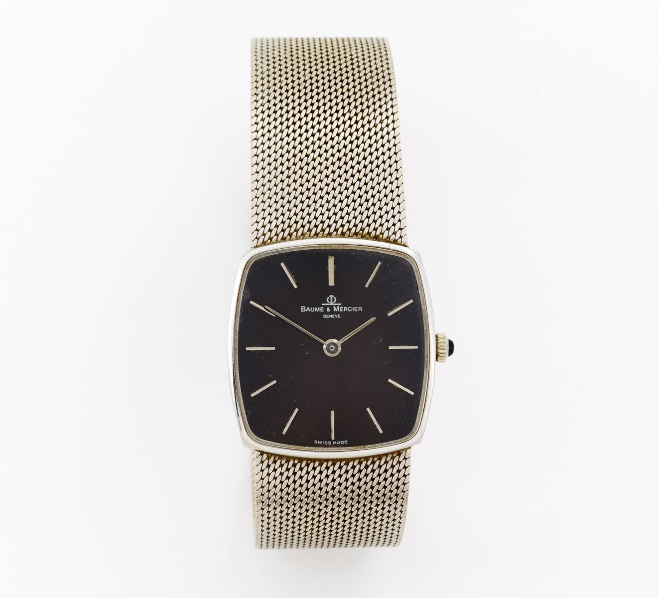 Baume & Mercier. Herrenarmbanduhr, 495142. 37060. 750/- Weißgold. Gehäuse-Nr.: D. 29 x 27mm, L. 20,3cm. Referenz-Nr.: 74,4g. Werk-Nr.: Schweiz.