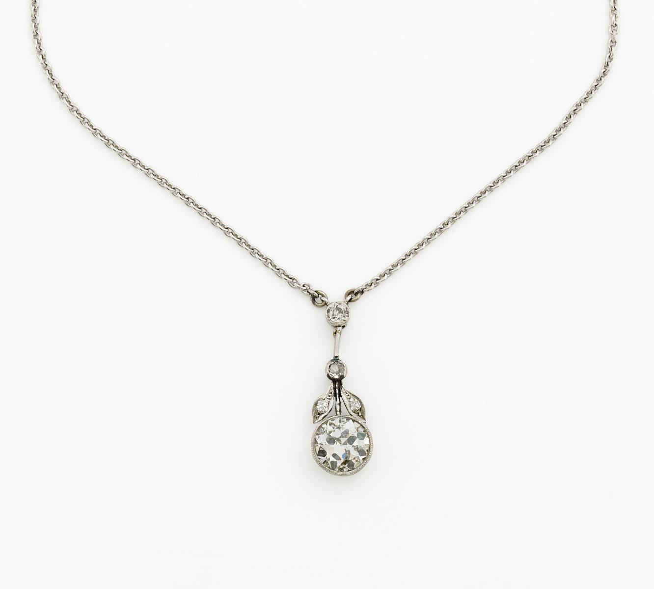 Art Deco. Linienanhänger mit Diamantbesatz. 750/- WEIßGOLD.