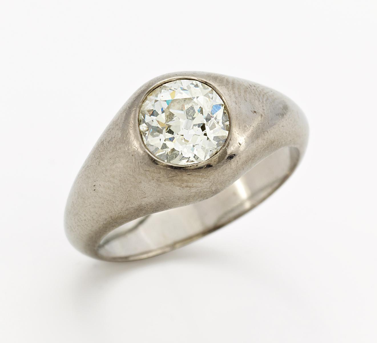 Mantelring mit Solitaire. 585/- WEIßGOLD, RHODINIERT.