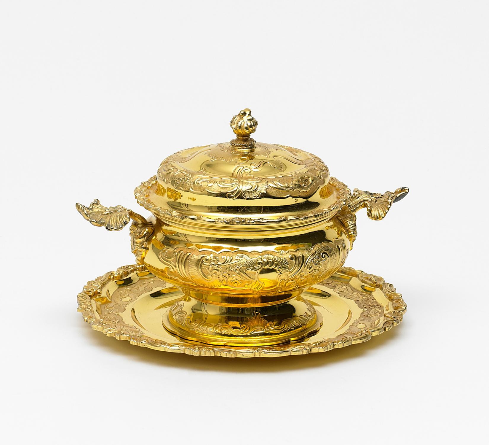 Silber, vergoldet. H.16cm, + 13,5cm. Ca.1584g. Zustand A/B.