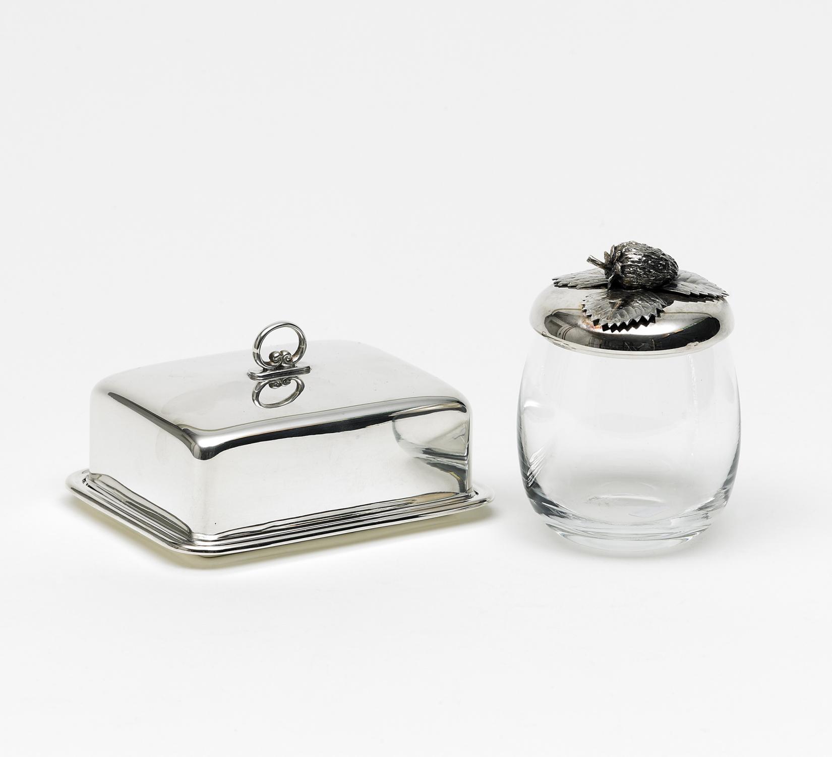 Silber, Glas. 8x14x11/H.12cm. Ca.378g. Zustand A.