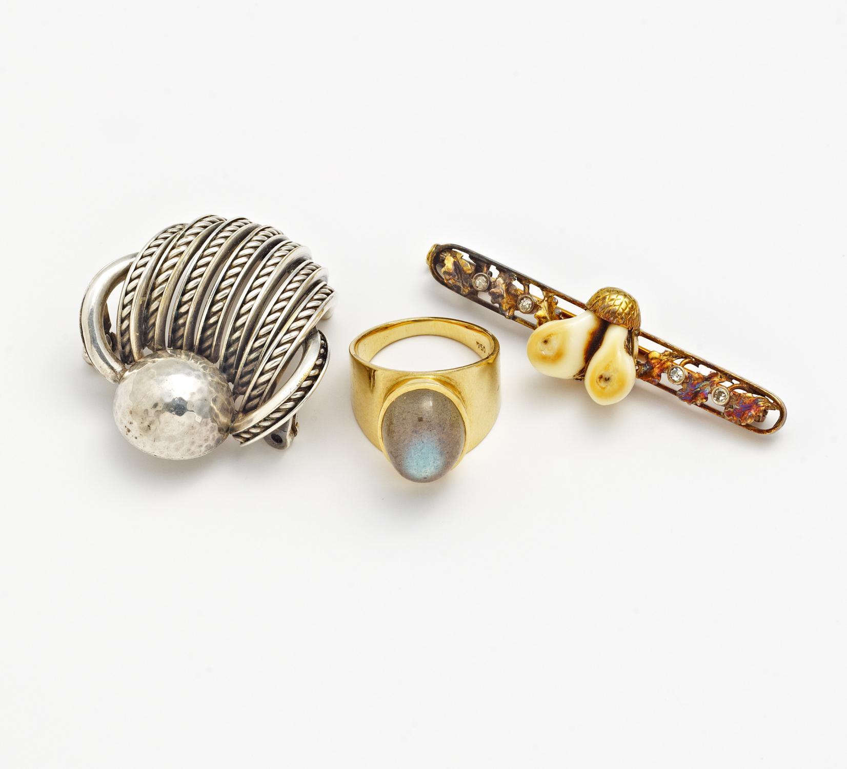 Konvolut: Ring mit Labradoritbesatz, Grandl-Stabnadel und Brosche.