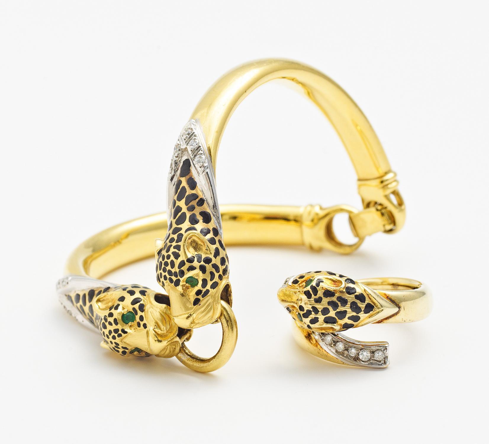 Set: Armreif und Ring mit Panthermotiv.