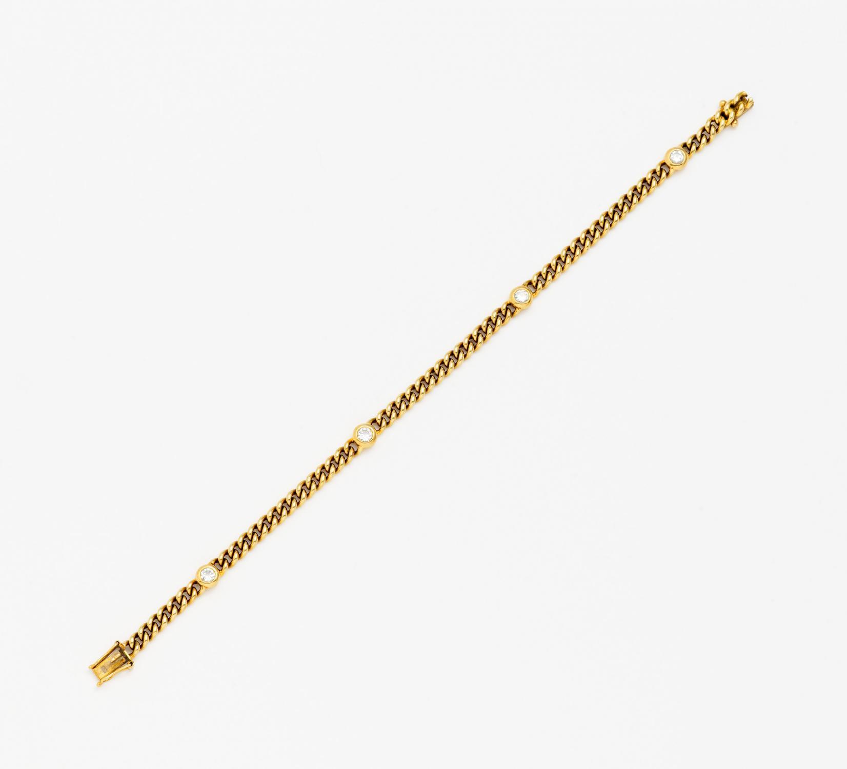 585/- Gelbgold, gestempelt. 15,2g. 4 Brillanten D. ca.3mm, L x B=19,5 x 0,4cm.~