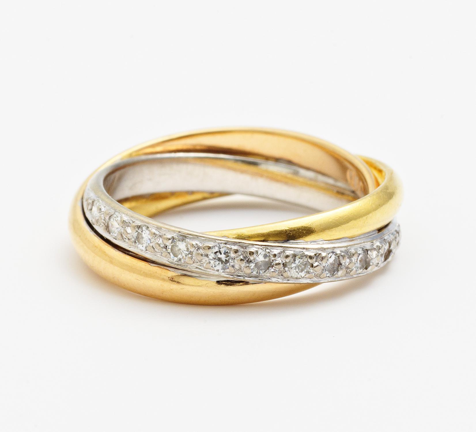 750/- Weiß-/Gelb-/Rotgold, gestempelt. 6,4g. 13 Brillanten, EU-RM: 51,5.