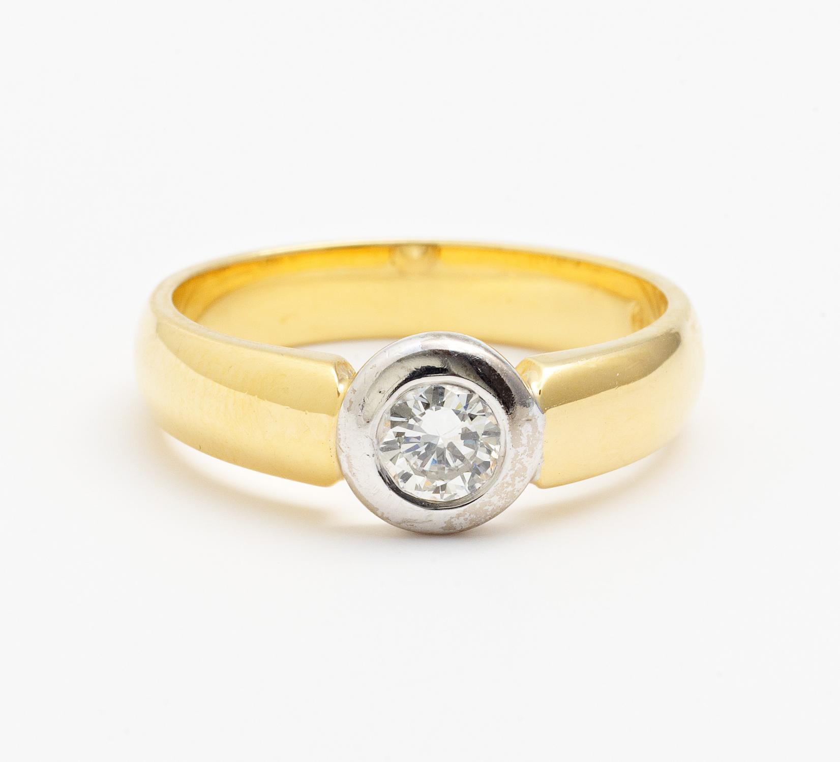 750/- Weiß-/Gelbgold, gestempelt. 6,0g. 1 Brillant D. ca. 4,5mm, EU-RM: 56,5.