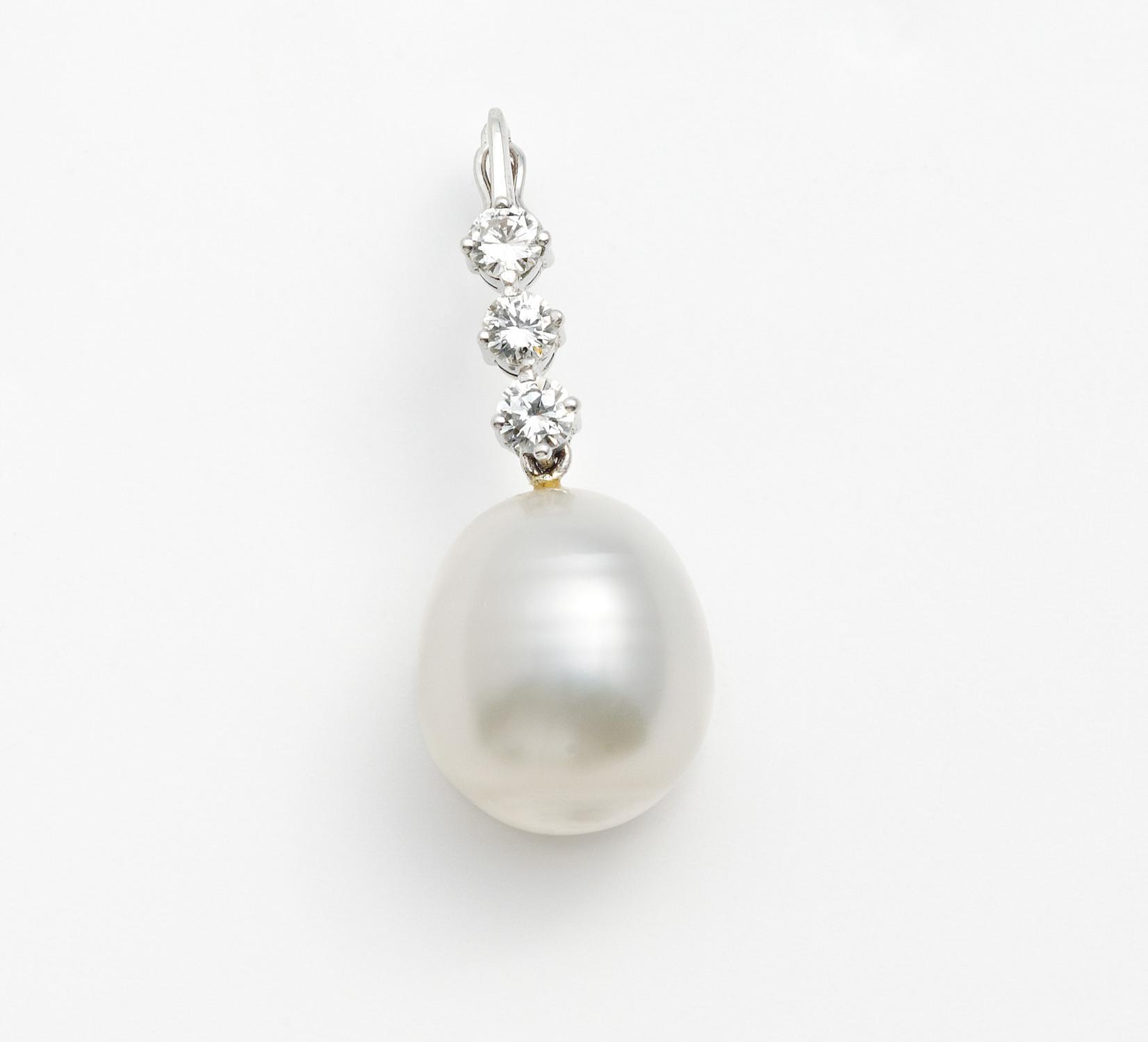 Clip-Anhänger mit Südsee-Zuchtperl-Diamantbesatz.