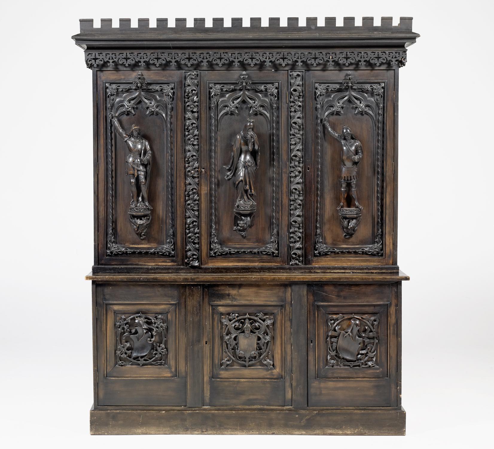 Großer Historismus Aufsatzschrank Stil Gotik.