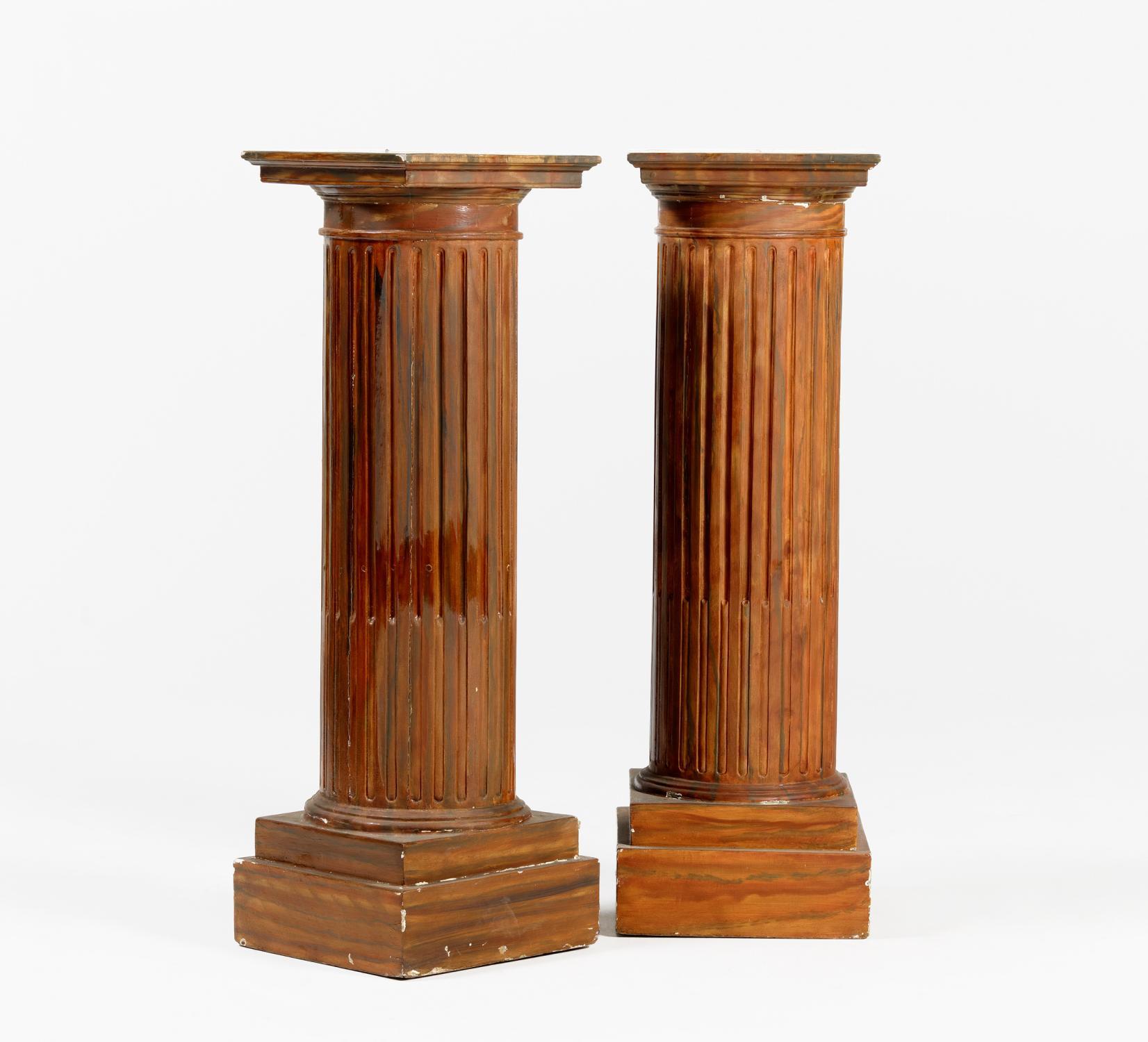 Holz gefasst. Marmorimitation. H. je 123cm. Zustand C.