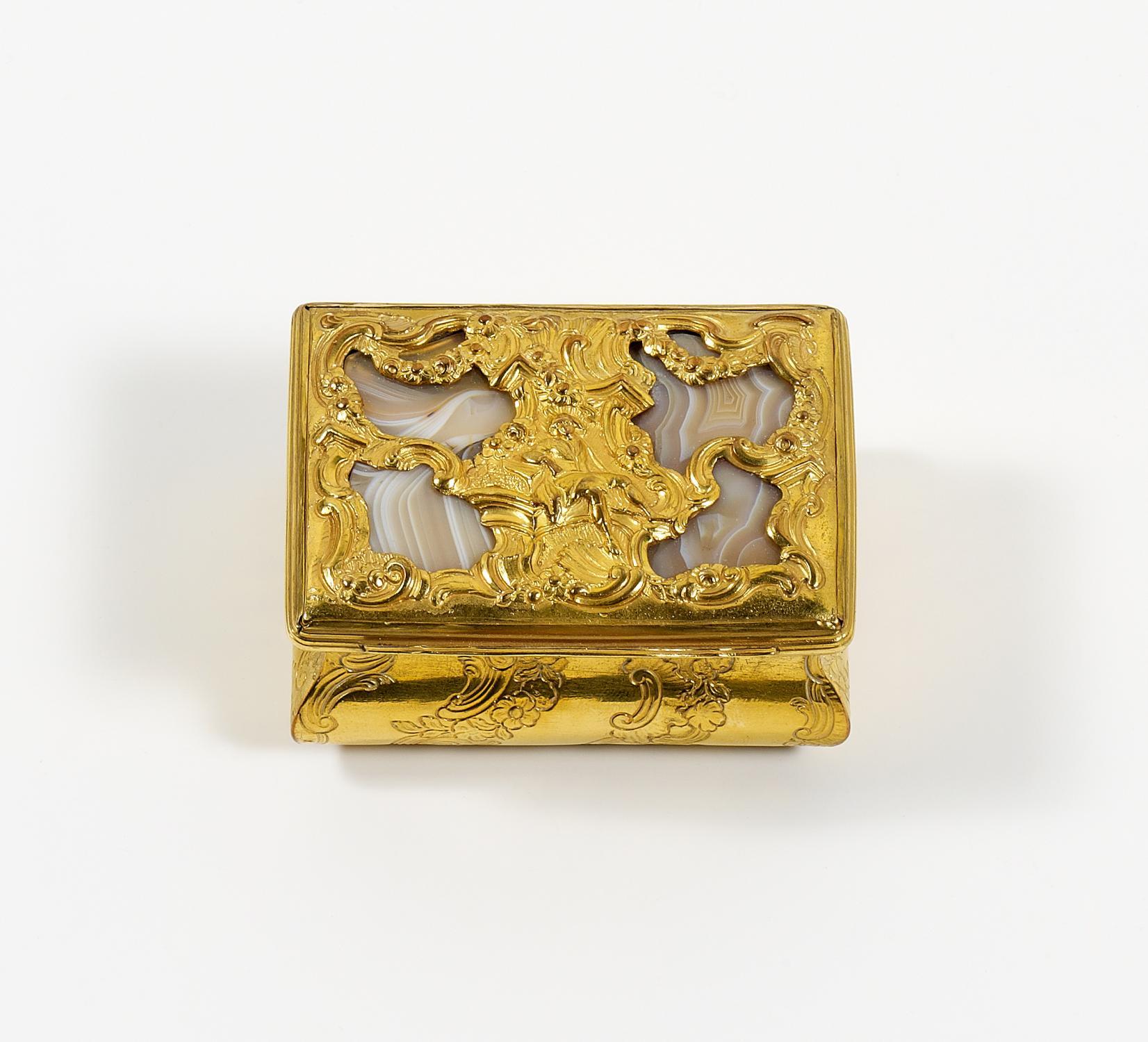 Kupfer vergoldet, Achat. 3,5x7,5x5,5cm. Zustand B.