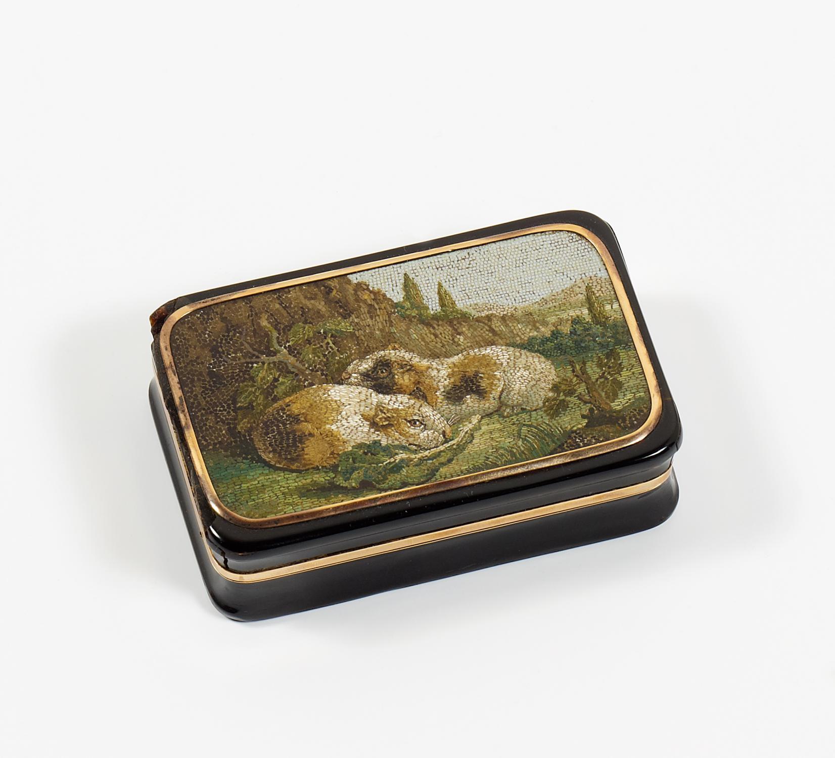 Schildpatt, Kupfer, Mikromosaik. 2,5x9x6cm. Zustand C.