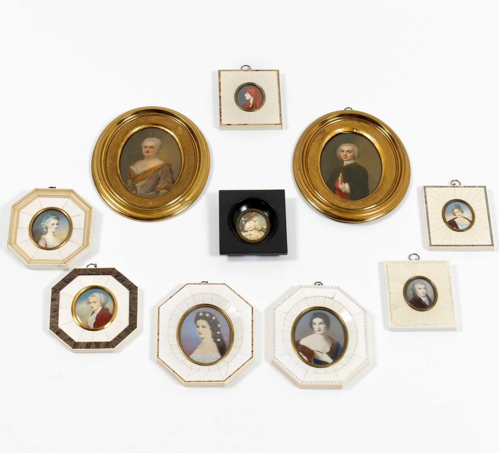 U.a. Porzellan, Holzrahmen, Metallmontierungen. H.8,5/20cm. Tlw. bez. Zustand A-B.