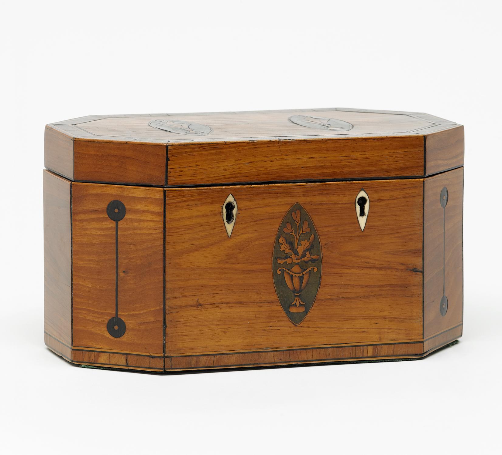 Satinholz u.a. Hölzer eingelegt. 13x23x13cm. Zustand B/C.