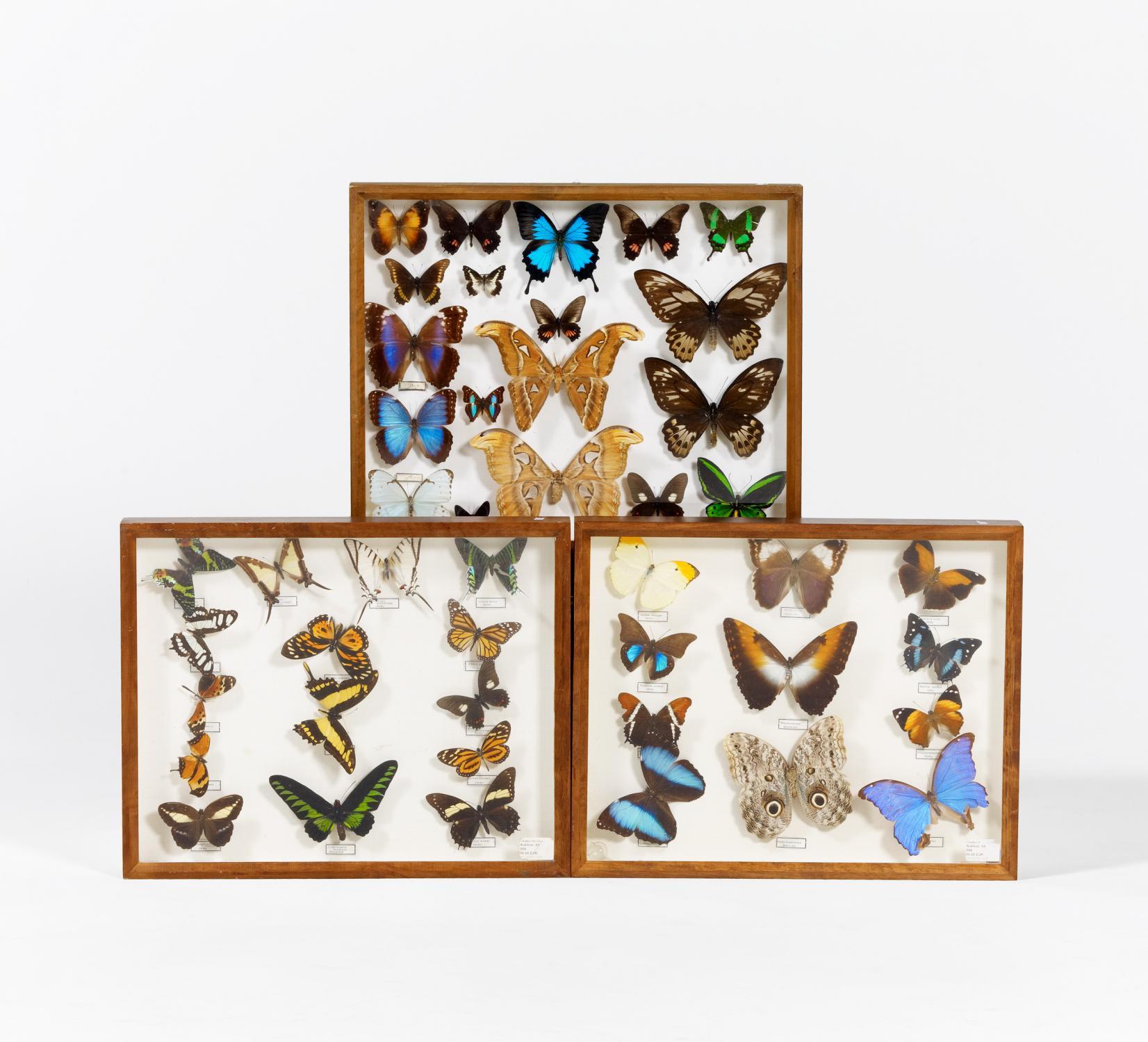 Schmetterlinge in Holzkästen. Je ca. 45 x 52cm. Zustand B.