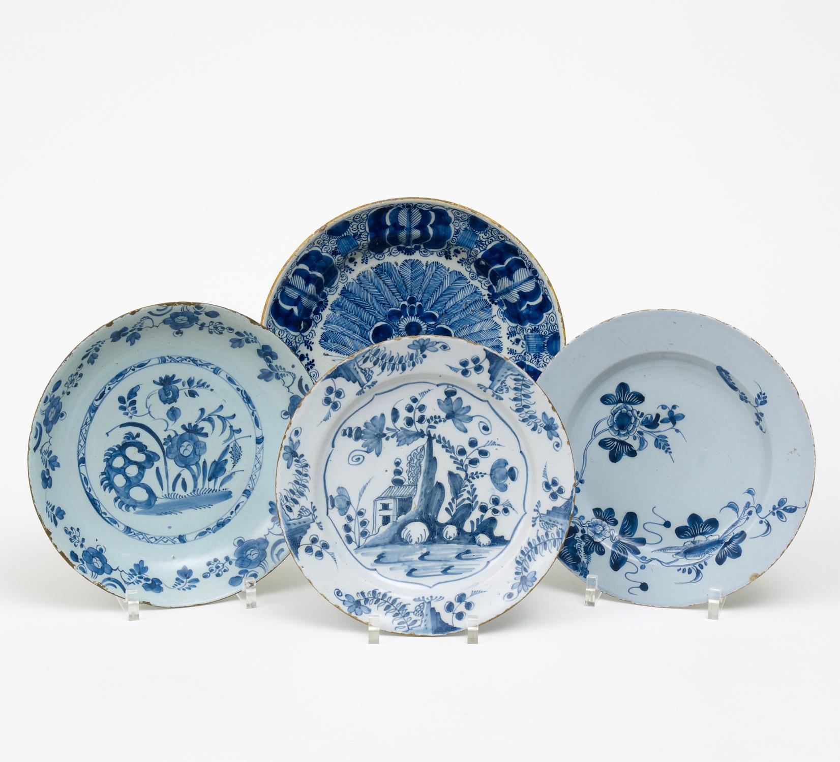Sandfarbener Scherben, weiß glasiert, blauer Dekor. + 28-32cm. Zustand B-B/C.