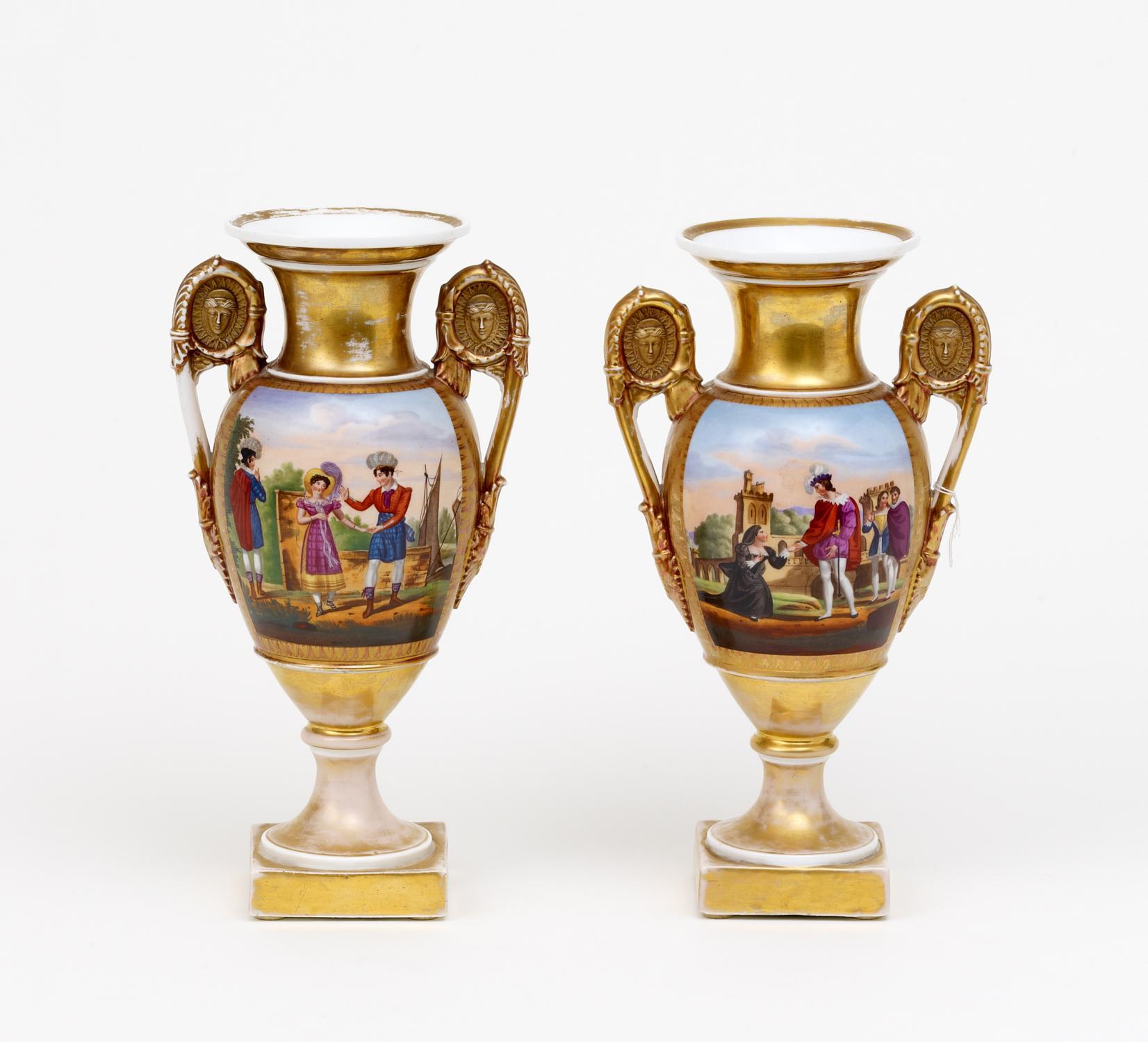 Porzellan, farbig und gold staffiert. H.34cm. Zustand B.