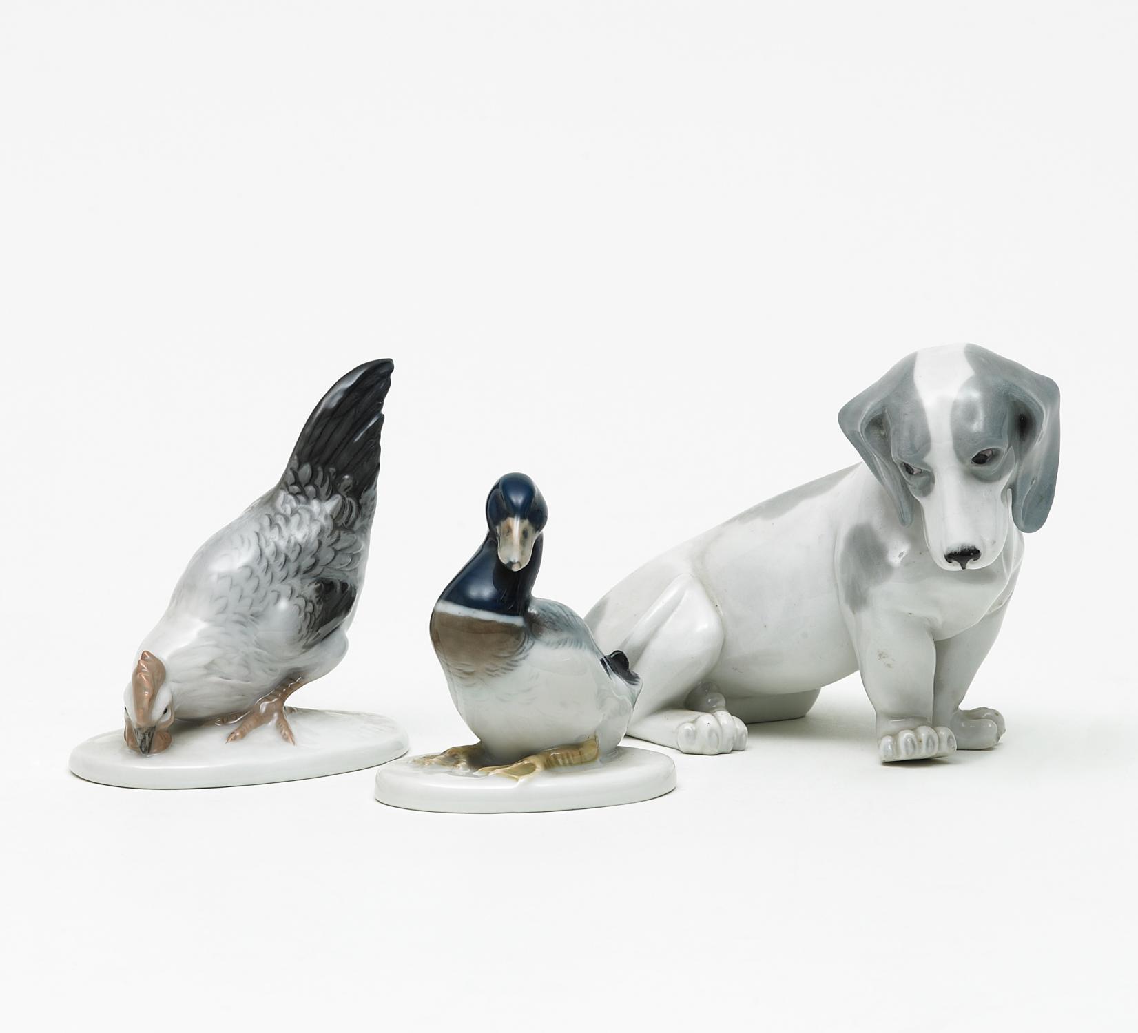 Porzellan, farbiges Dekor. {Beil.:} Hund. H.7,5/9cm. Zustand A. Bez. 'K. Himmelstoss'.
