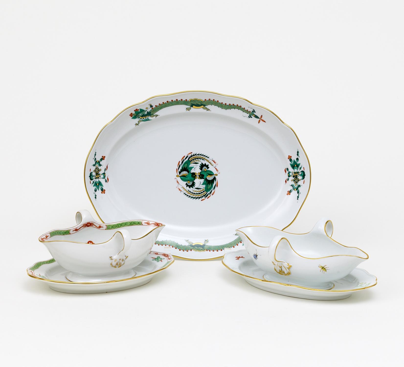 Porzellan, farbig staffiert. Goldrand. L.25/36cm. Zustand A-A/B.