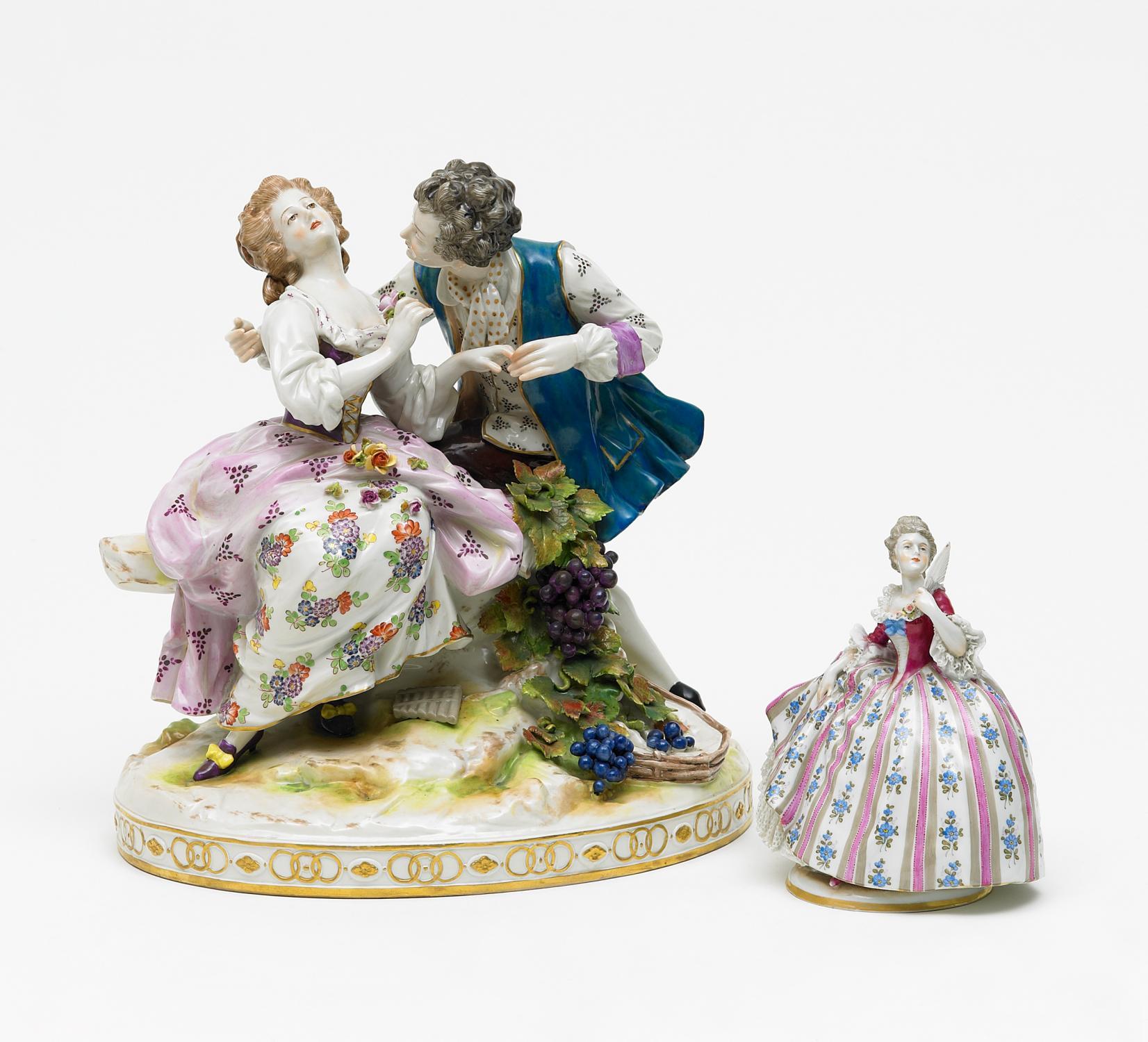 Porzellan, farbig und gold staffiert. {Beil.:} Dame mit Fächer. Plaue. H.34cm. Zustand B/C.