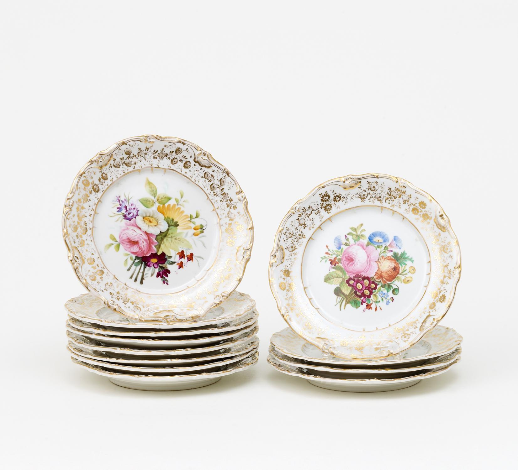 Zwölf Beilagenteller Blumendekor.
