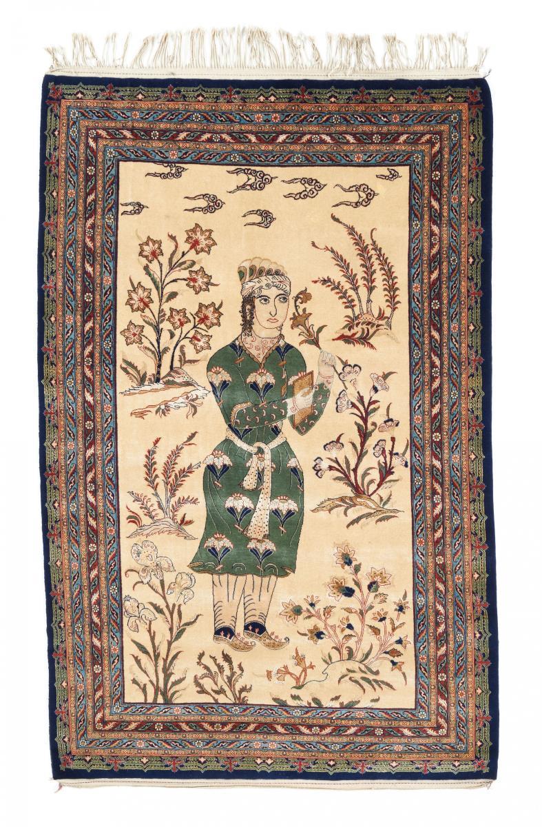 Mitte 20.Jh. 207 x 140cm. Mit Seidenakzenten. Zustand B/C.