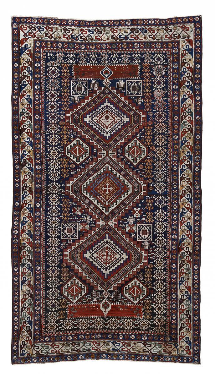 19.Jh. 290 x 161cm. Zustand C. (Gleichmässig dünner Flor, erneuerte Shirazi, großer Fleck).