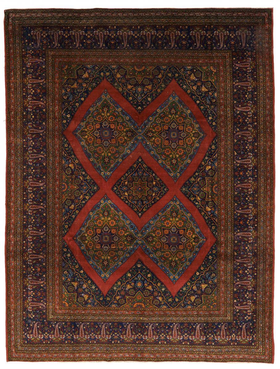 Um 1900. 267 x 347cm. Zustand C. (Verfleckt, leicht verfärbt, teilw. dünner Flor).