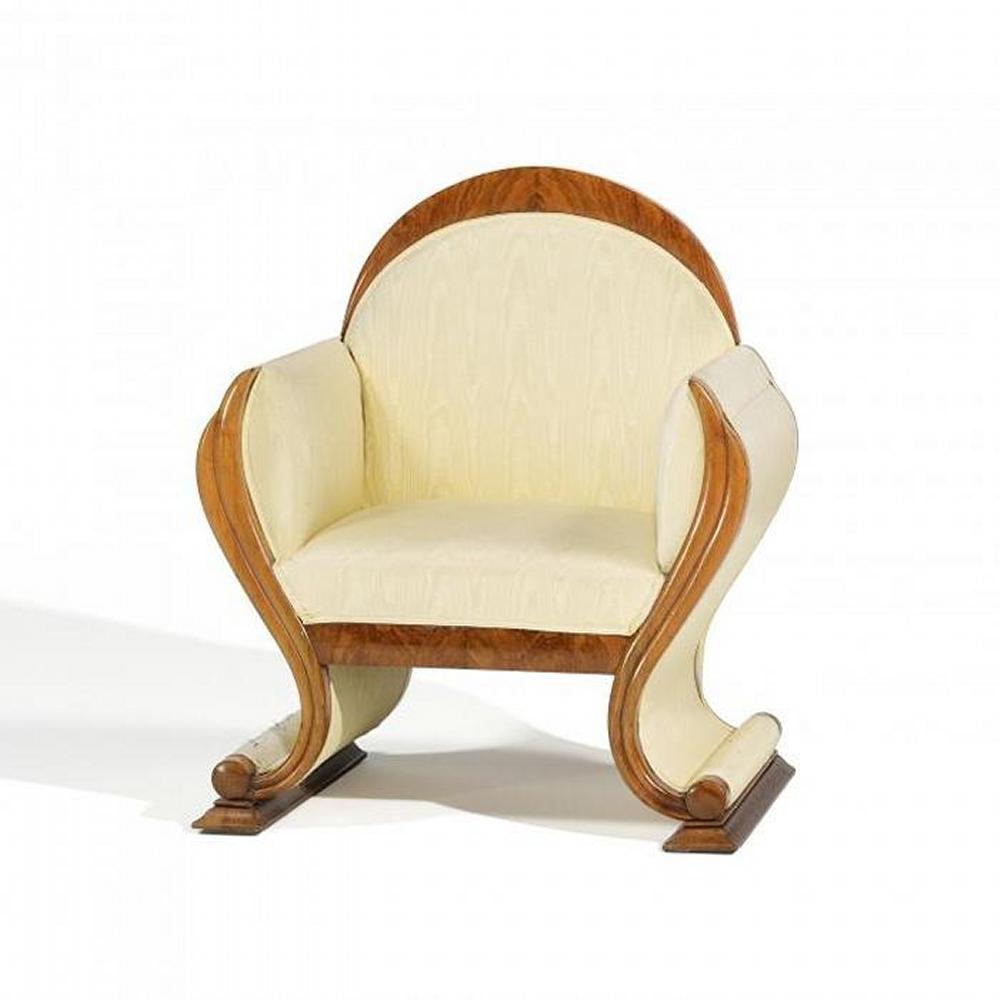 Nussbaum. Gepolstert. Stark geschweifte Form. Höhe 103cm. Zustand B.