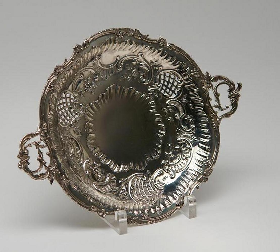 Silber. Höhe 5cm, + 23,5cm. Ca. 398g. Zustand A.