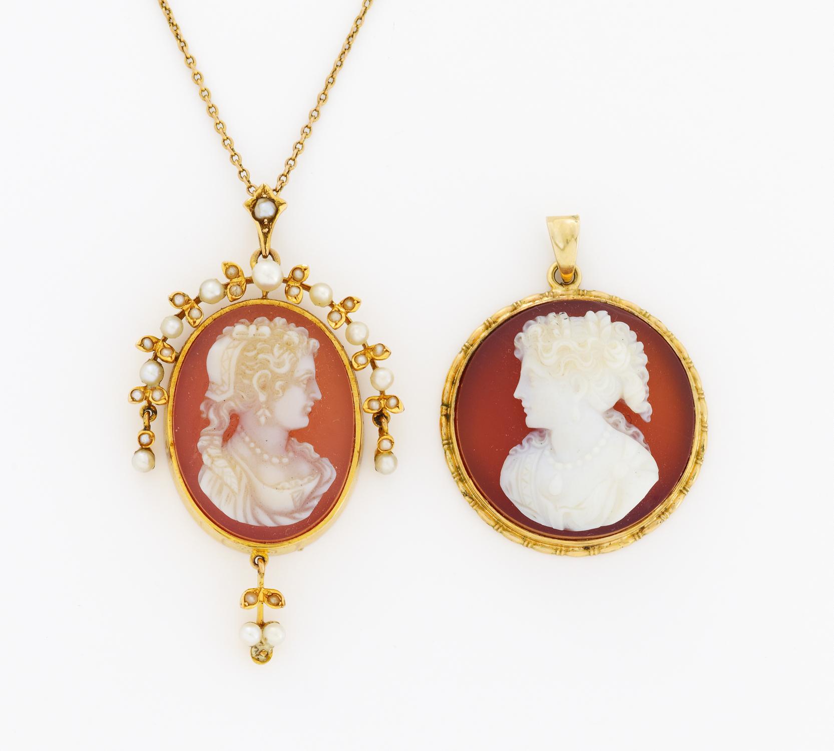 Set: Collier mit Muschelschnitt-Kamee und Anhänger.