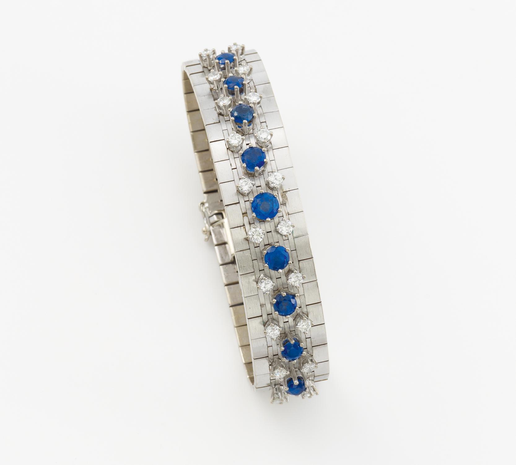 Cocktailarmband mit Saphir-Brillantbesatz.