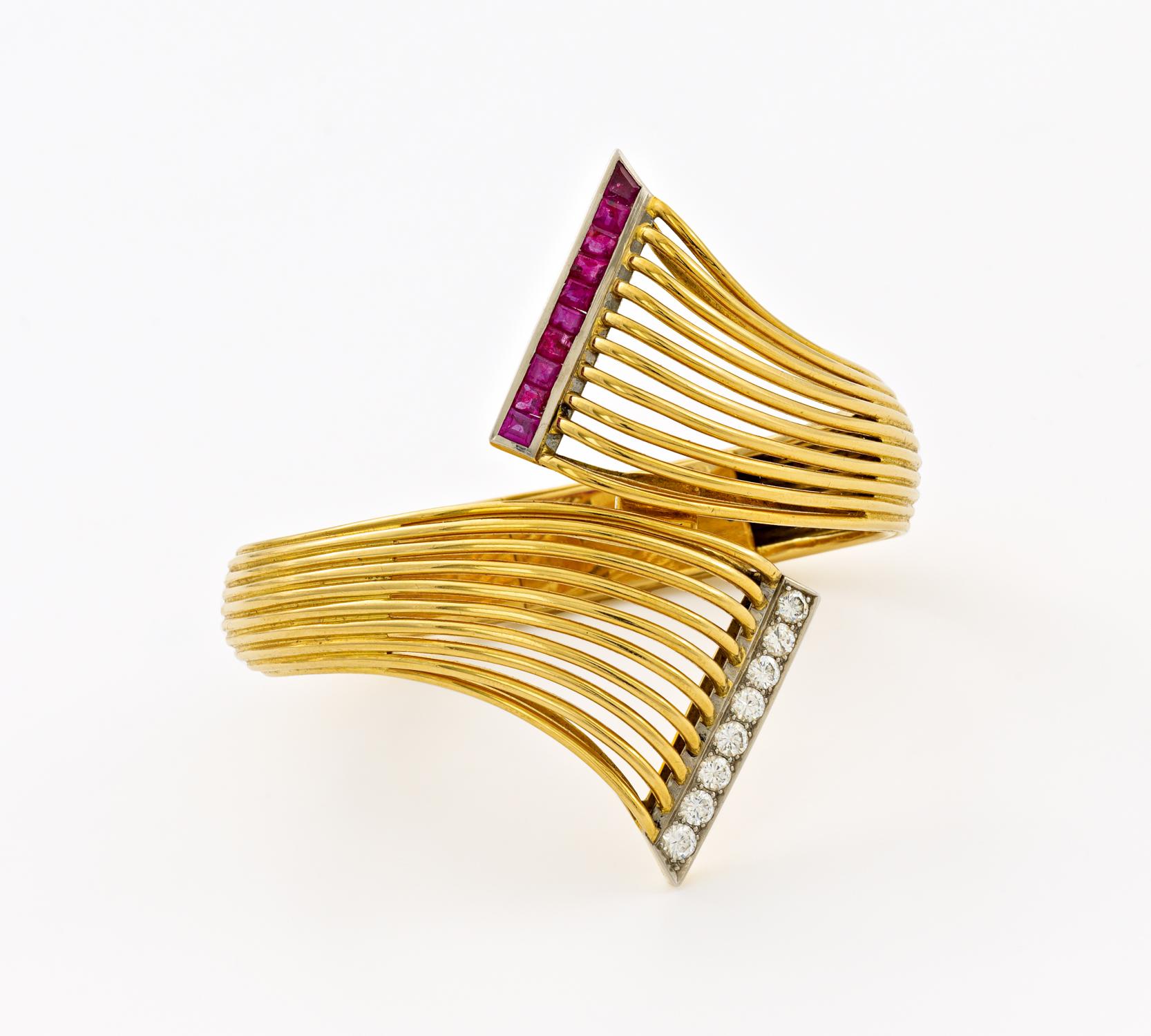 Armspange mit Rubin-Brillantbesatz.