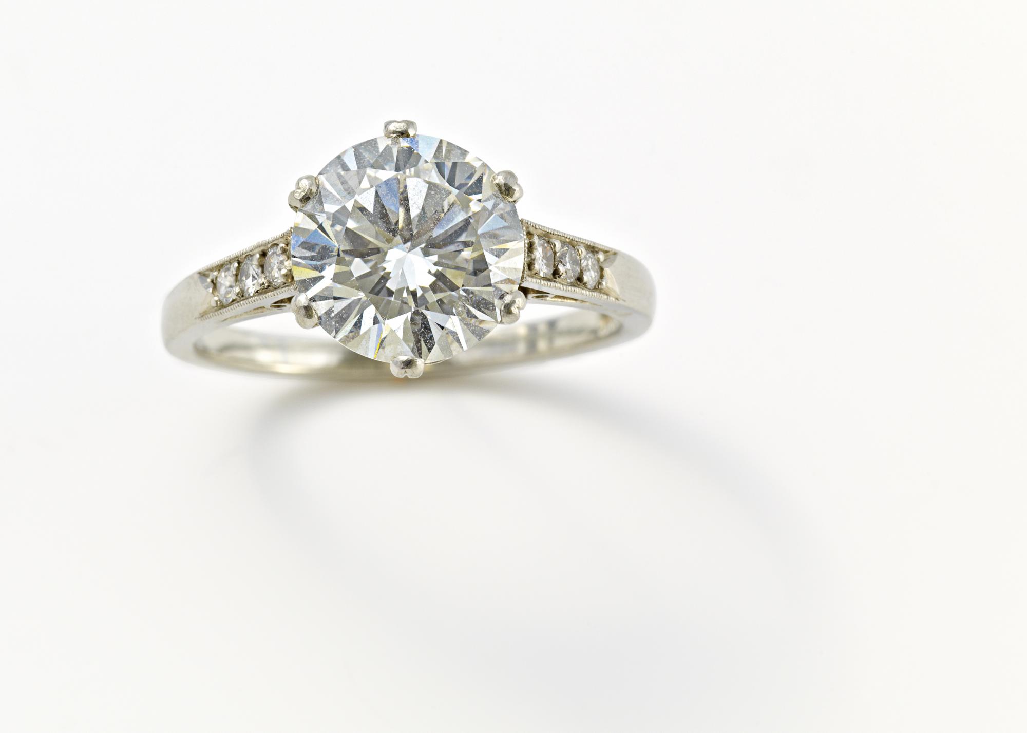 950/- Platin, Gewicht: 5,2g. 1 Brillant ca. 2,867ct W(H) VVS2, 6 winzige Brillanten, EU-RM: 55.