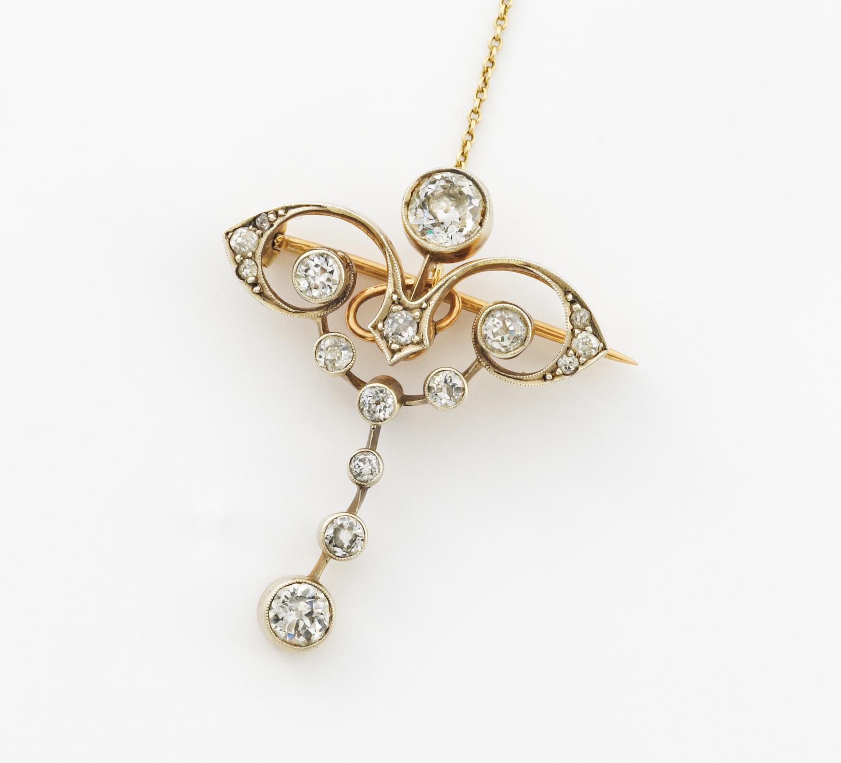 Jugendstil. Brosche mit Diamantbesatz.